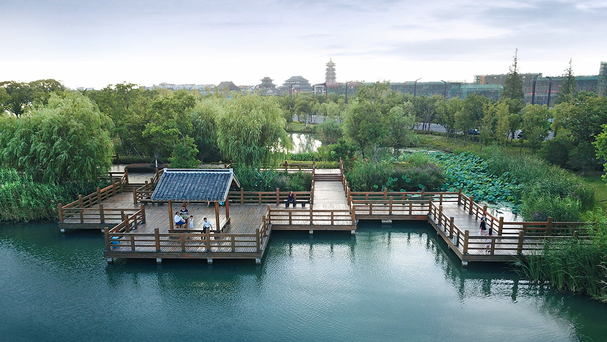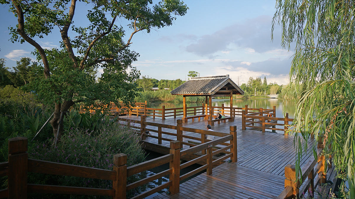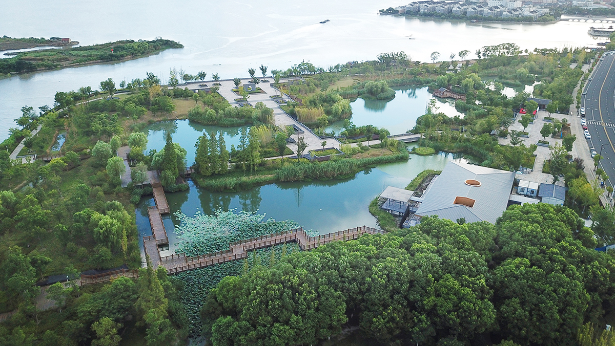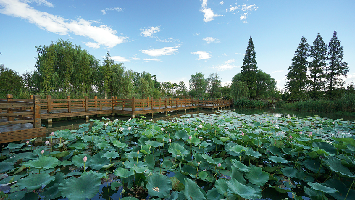 鶯脰湖地處水網縱橫的蘇州市吳江區平望鎮,是平望的母親湖,自古便以煙波浩渺,蘆葦茂盛,白鷺翻飛,征帆漁歌的形象為人稱頌。生態水景園位于鶯脰湖北岸,總面積約 15 公頃,是吳江區“1058 工程”中重要的生態文明工程。