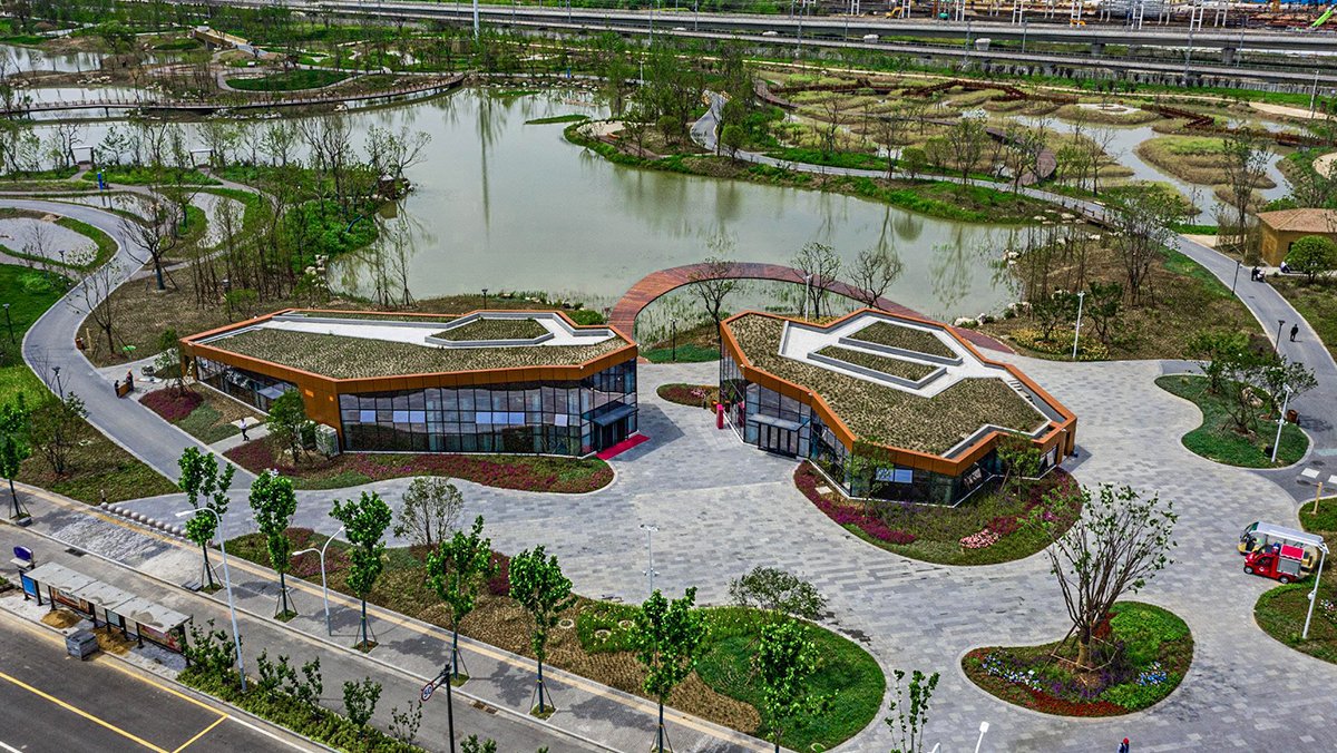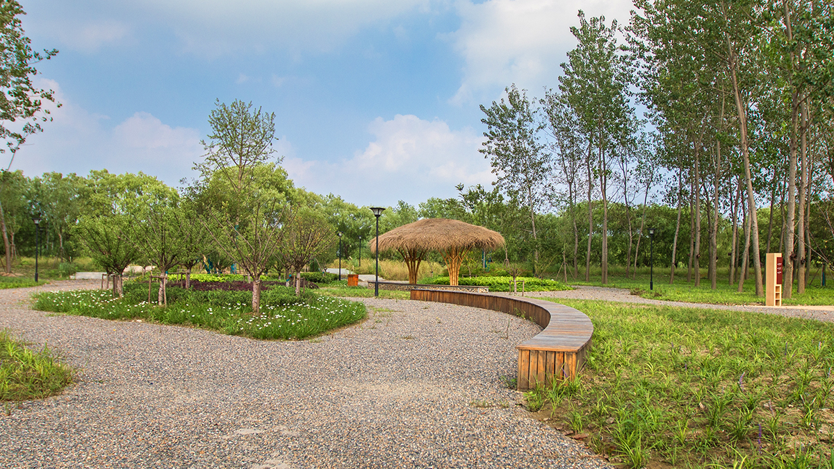 鹽城濕地公園充分考慮鹽城歷史和環境特征,體現河湖林田海不同濕地風貌,分為河流濕地展示區、湖蕩濕地體驗區、森林景觀門戶區、田島水鄉風情區和濱海濕地印象區,通過運河路上的生態廊道,將范公堤的理念注入其中,連接各個分區。