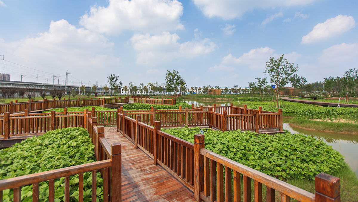 鹽城濕地公園設計范圍西至城際鐵路,東至通榆河,南至青年路高架, 北至建軍路,規劃范圍總面積為44.13公頃。