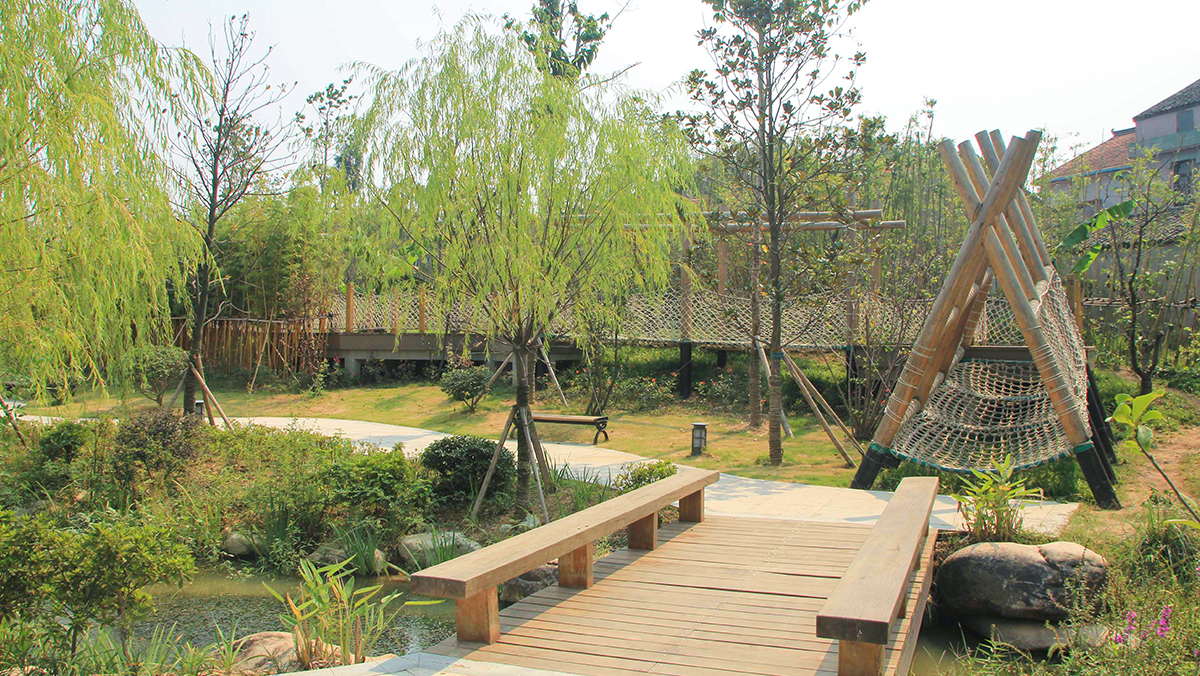 設計依托原有地形、水系等自然資源,因地制宜將游樂設施融入園林造景之中。