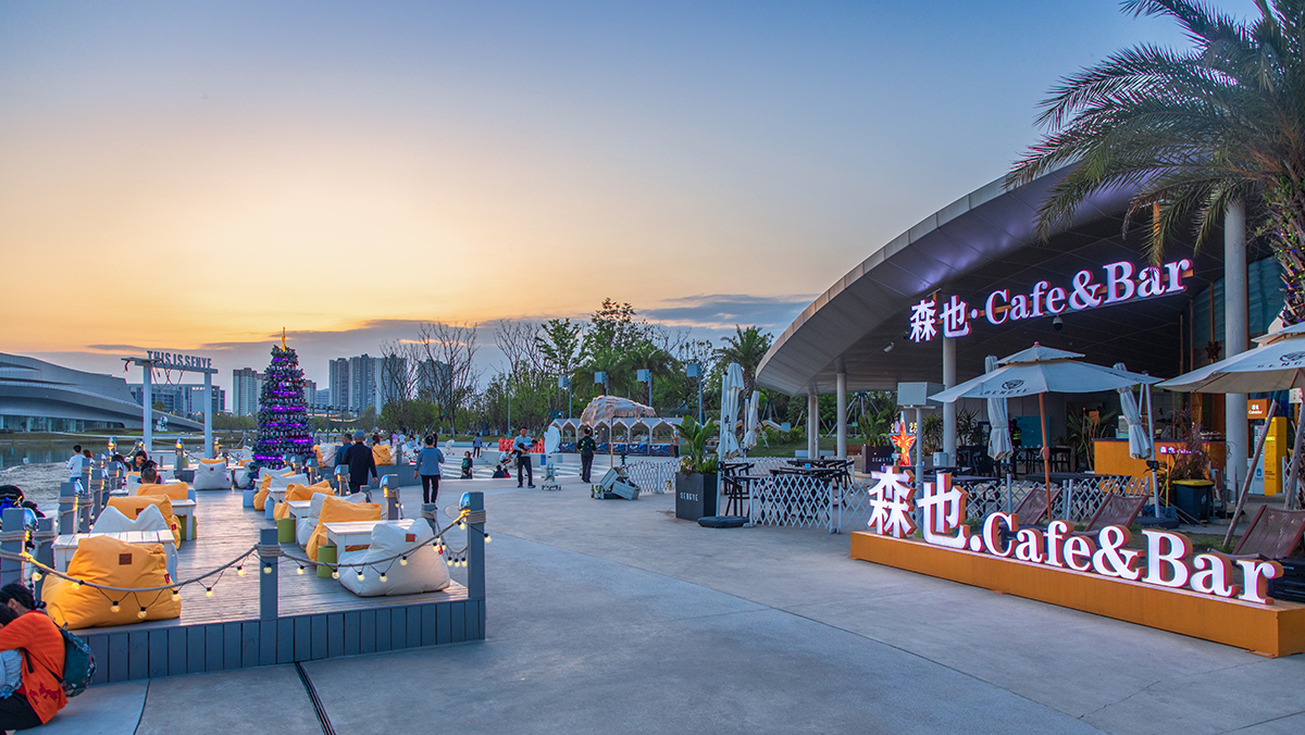 公園以“星云”為設計概念,以一館(科幻館)、一園(蜀賢園)為雙中心,環水沿岸,構成歷史古蜀、現世科技、未來幻想的時間之環。在此基礎上構成了融合生態、科技、活力、人文的五大分區。“一館一園融古今,五區八景耀菁蓉”。