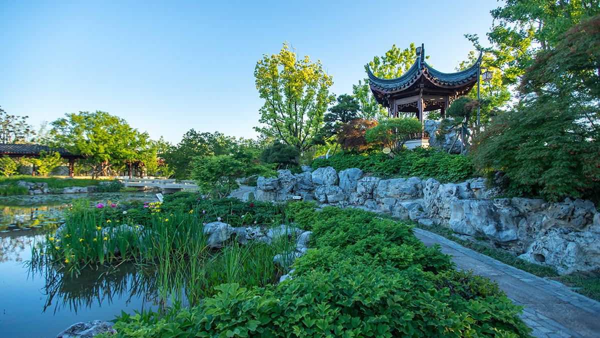 滈園在布局上形成了北山林,中宅院,南園林三處景區;設置了5處主題鮮明的庭園:松楓庭、山池院、紫藤院、清風水院、曼陀羅院;并結合植物造景凝練形成了6處景點梨花落、牡丹臺、賞梅坡、青蓮池、杏花澗、綠筠里。