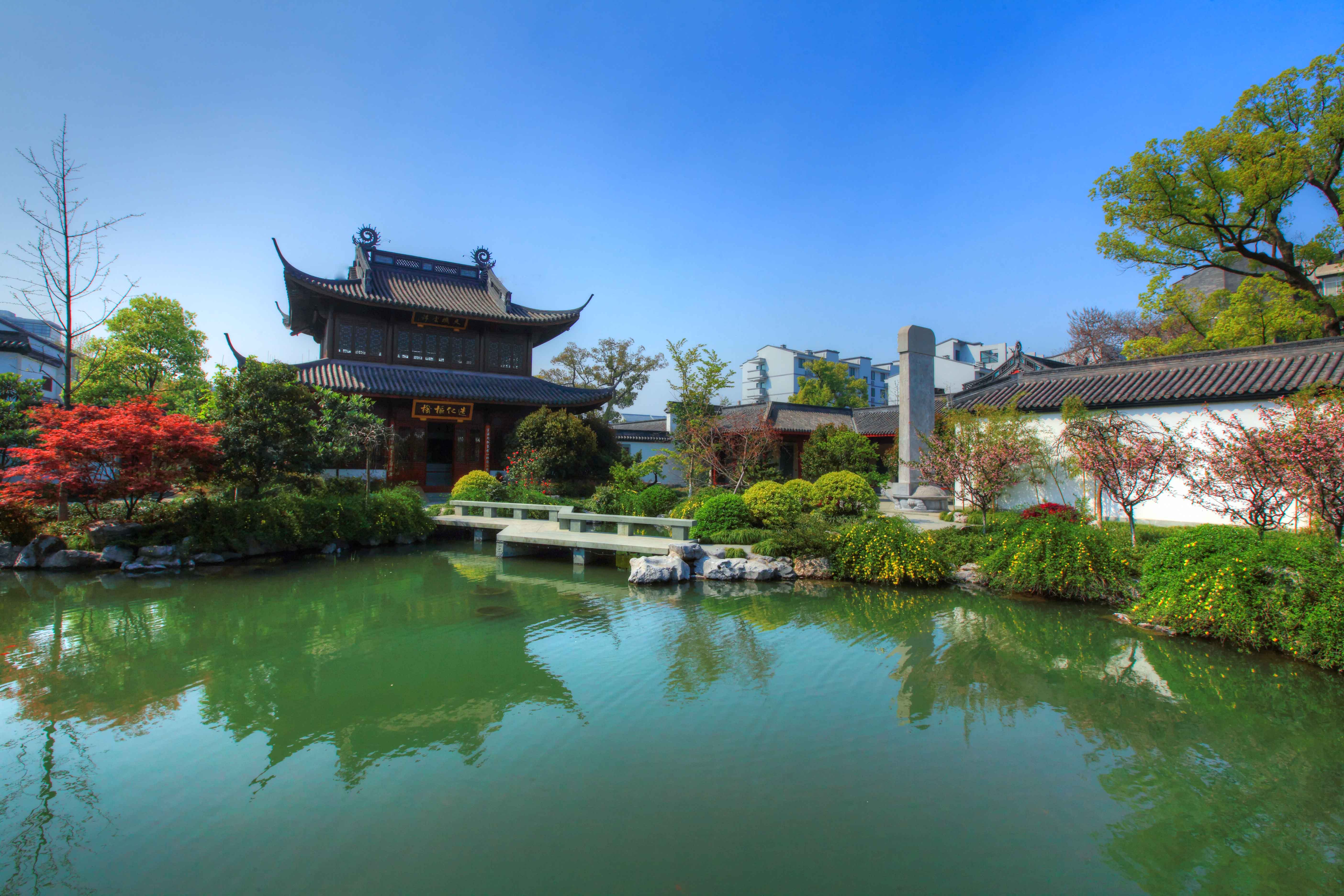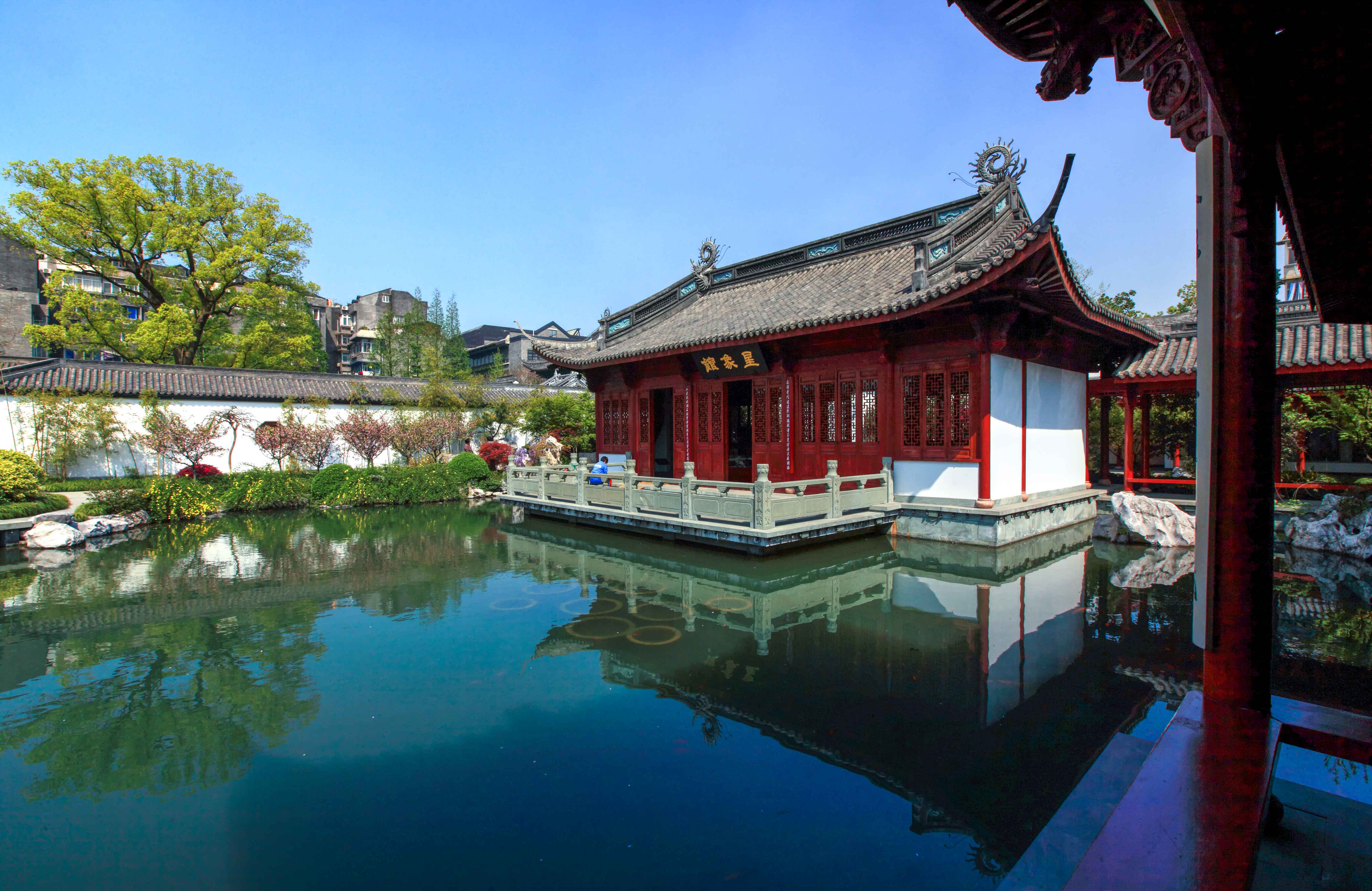 東區(qū)為典型的江南園林式庭院,花香鳥語、水流潺潺,各建筑如珍珠般散落其間。水庭位于整個(gè)庭院中心,石經(jīng)閣、星象館、文昌閣等建筑在假山池水間錯(cuò)落布置,曲折綿長(zhǎng)的回廊將它們有機(jī)地串聯(lián)在一起。蘊(yùn)涵著深厚歷史積淀和豐富人文內(nèi)涵的500多塊碑石,被稱為是融歷史、科學(xué)、藝術(shù)為一體的“石質(zhì)書庫”,恰當(dāng)?shù)卣故居谕づ_(tái)樓閣之中,與婉約的江南園林融為一體。