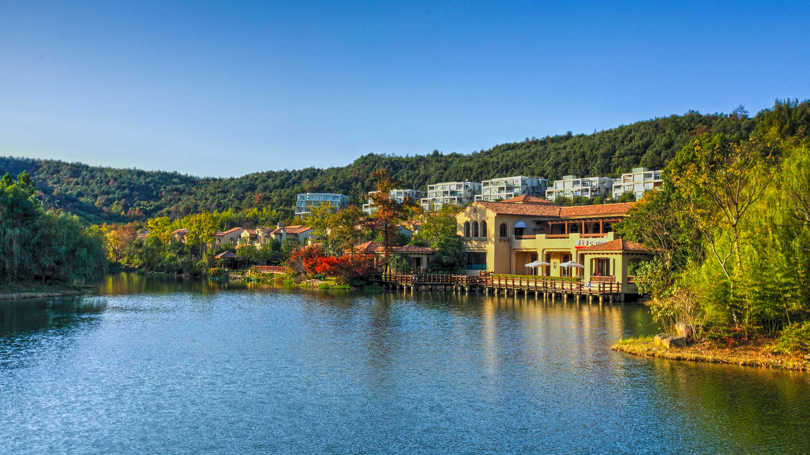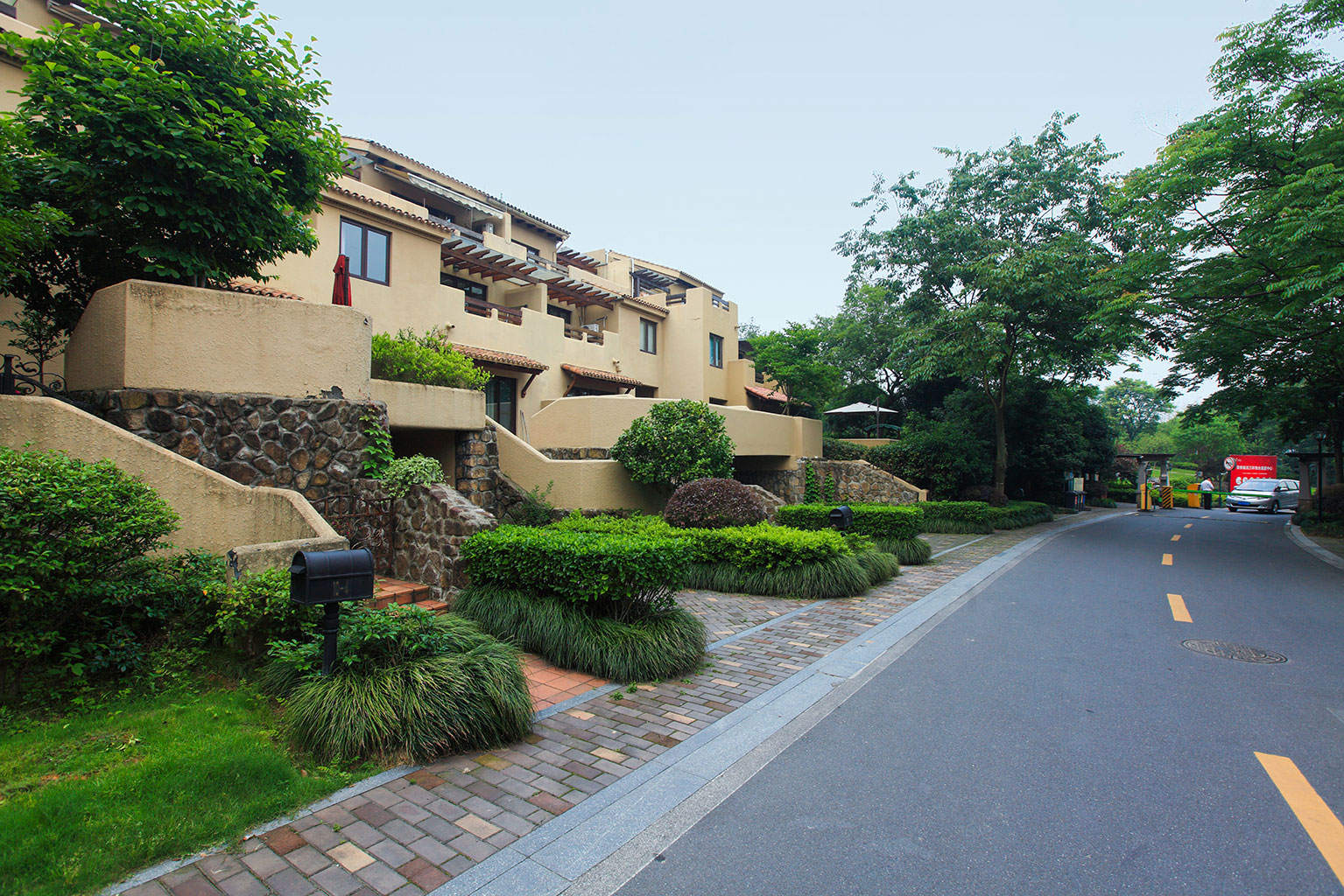 良渚文化村的整體定位與環境特征決定了其自然、自在的景觀特質,因而竹徑茶語的景觀與山地大環境融合、滲透,并形成你中有我、我中有你的格局。設計包括竹徑茶語公共景觀和私家庭院環境2大部分——整理水系成溪、河、湖,通過不同高差的臺地修復地形,以自然式風景林銜接山體林相,庭院植物精心配置。最終實現的親切、自然、優美的環境,為住戶營造了舒適、宜人的生活空間。