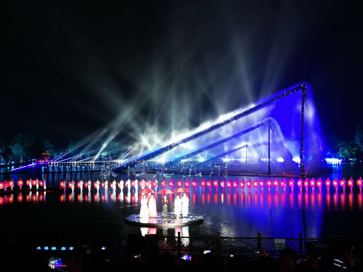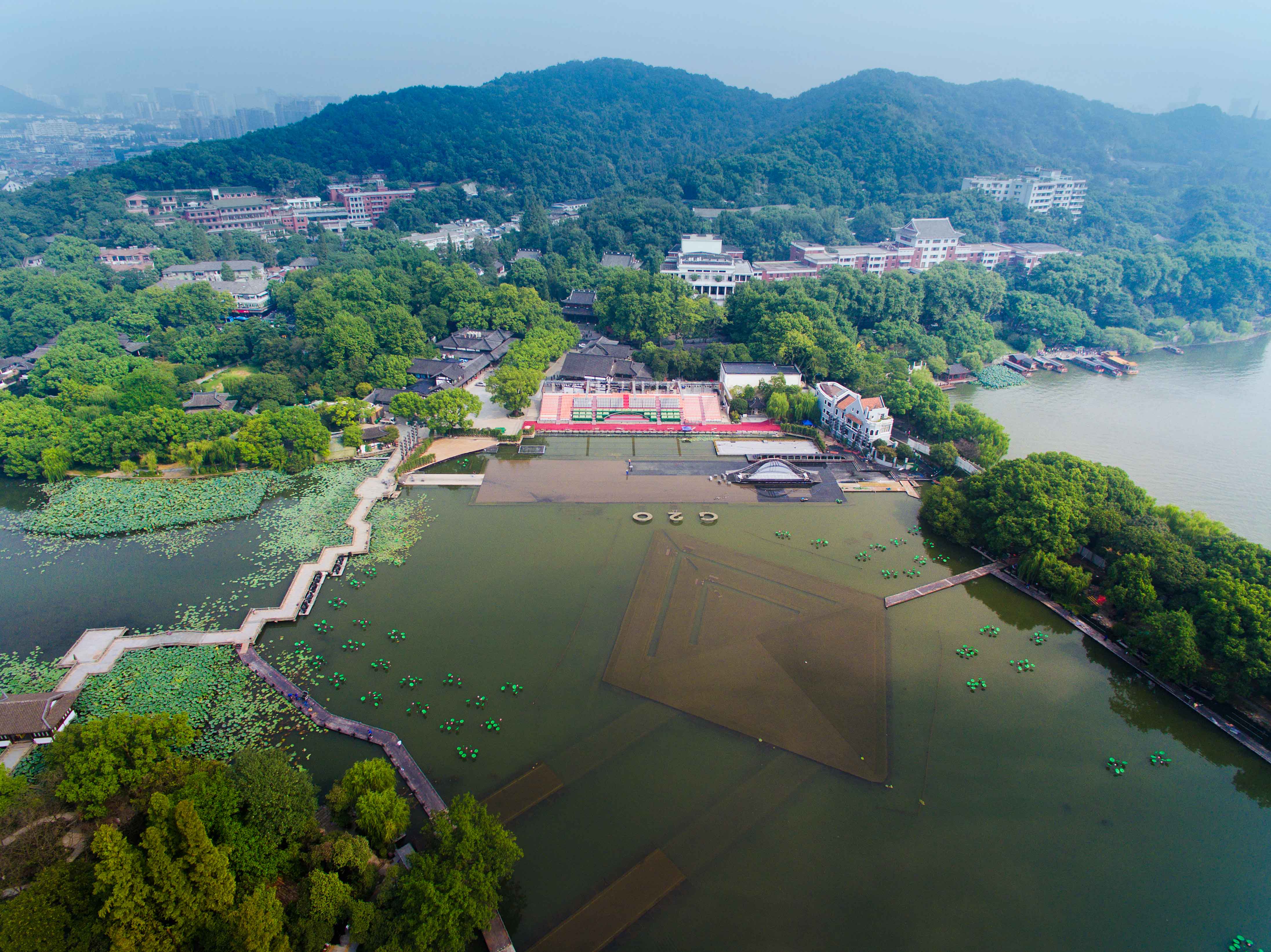 “最憶是杭州”選址在岳湖景區,是杭州印象西湖文化發展有限公司主辦,著名導演張藝謀、王潮歌、樊躍“鐵三角”導演團隊聯手打造的山水實景演出。項目綜合考慮了景觀效果、環境保護、演出技術要求、安全等各種因素,合理布局舞臺、設備、觀眾區域,以西湖真實的自然山水為演出場景,把西湖水化為中心舞臺,展演西湖風雅的歷史人文,給游客以優美的視野和超然的感受。設計在岳湖樓南邊設置可容納1800人的升降式可收縮并可移動的階梯形看臺;在湖面演出區域內配備特制的燈光和激光照射,以滿足舞臺及背景的需要,不對西湖景觀造成明顯影響;對周圍建筑進行改造利用,采用傳統建筑形式,安排售票、餐飲和休憩等功能。