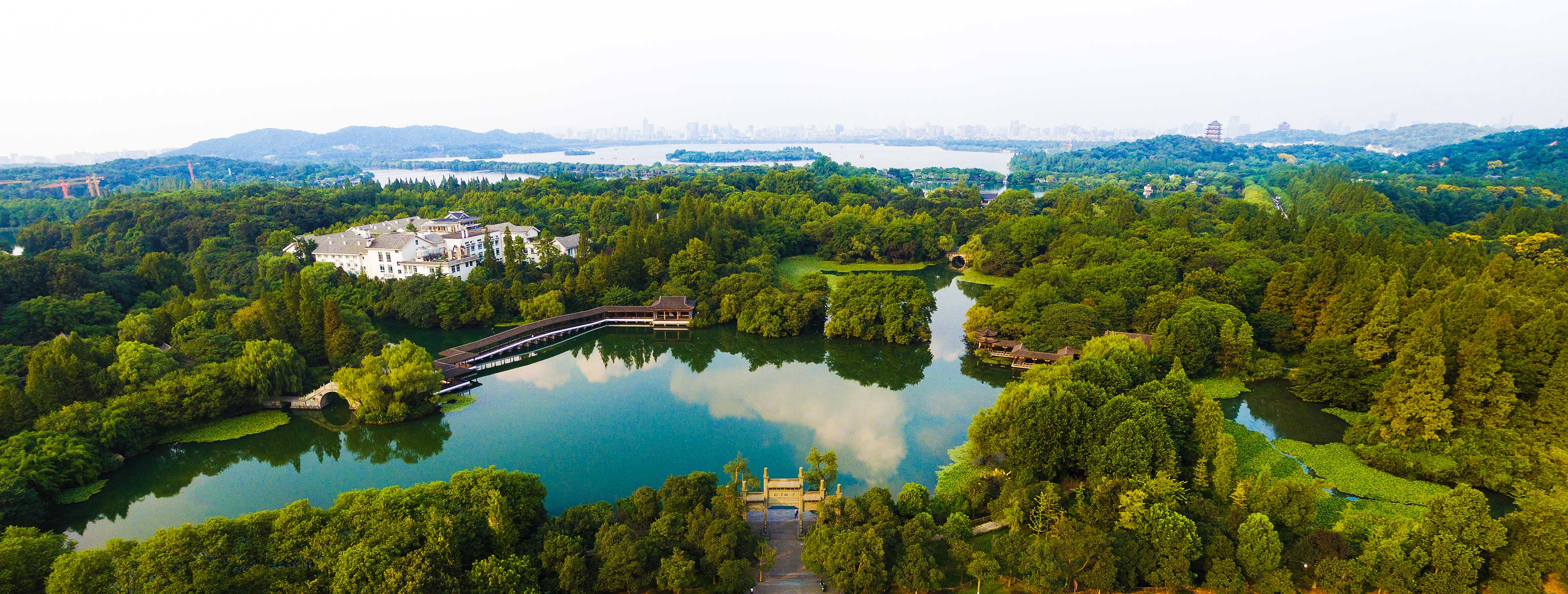 位于三臺山景區最南端,通過水道與烏龜潭相連,又經濬源橋及花港公園內水港與小南湖貫通。浴鵠灣湖面聚散開合,岸線曲折有致。水面上幾座為保存原有喬木而留下的小島將全灣分割成內外兩部分,外灣連通西湖,內灣平靜無波。對沿岸名人故跡進行了恢復,為此處增添了豐厚的人文氣息。