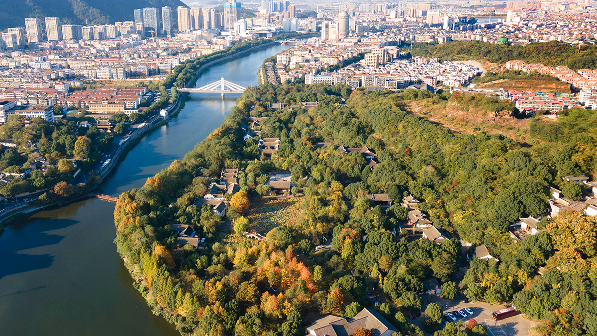 西施故里旅游區是浣江-五泄國家重點風景名勝區的重要組成部分。景區位于諸暨市城南,是一處以原有西施殿為核心、以浣江為軸的沿江兩岸帶狀用地,總面積約1.44km2。其中一期工程包括主入口管理區和鸕鶿灣古漁村景區,主要以西施文化為主題,充分展示古越文化和故里風情。