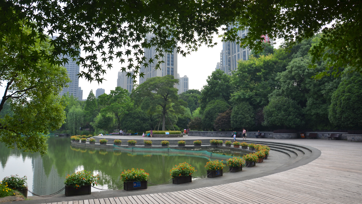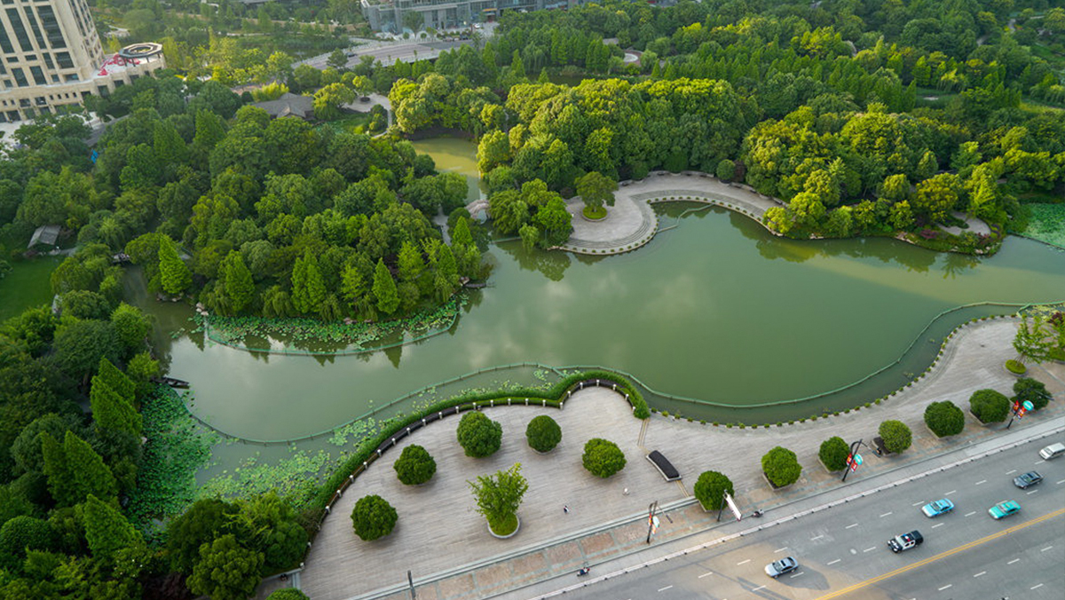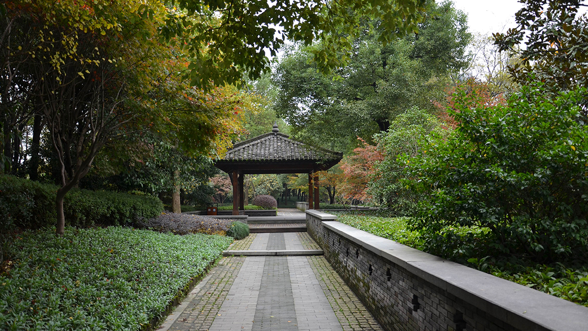 水景公園位于世紀大道以北,新豐路以西,人民路以南,喬司港兩側,總用地面積122.4畝。公園原址為低洼農田和菜地,設計遵循自然生態和以人為本的原則,利用原有洼地和小溪,掇山理水,組合景觀空間。以植物造景為主,以地形、綠化、水景、小品等形成園林景觀特色。結合地形,修建地下車庫,成為臨平城西的一塊供市民休閑、娛樂的標志性城市中心綠地。