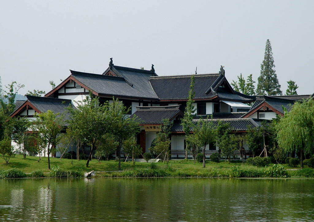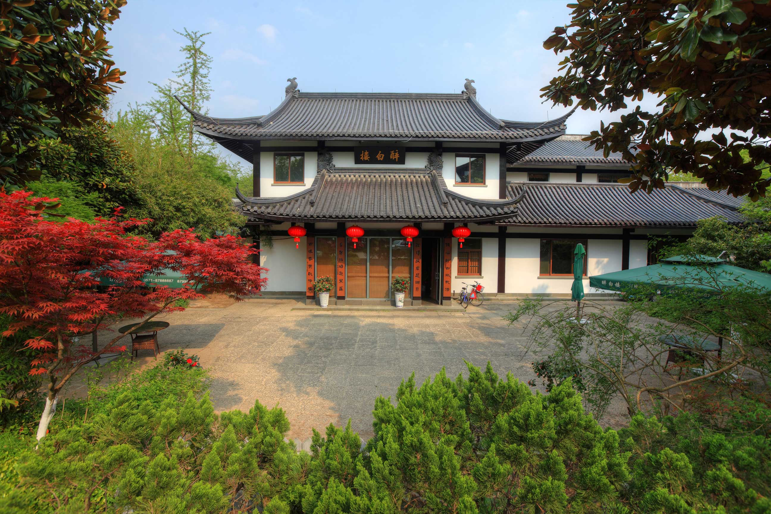 歷史上的醉白樓已經(jīng)無處可覓,西湖湖西綜合保護(hù)工程中,依據(jù)古詩文獻(xiàn),選址下茅家埠一處凸出水面的半島,恢復(fù)醉白樓。采用院落式布局,大小空間層次豐富,室內(nèi)外環(huán)境相互滲透,融為一體。建筑風(fēng)格選用宋風(fēng),歇山與懸山組合,錯落有致。主體建筑飛檐翹角,細(xì)部裝飾斗拱、直棱窗,風(fēng)貌端莊秀麗。優(yōu)美的醉白樓融于茅家埠鄉(xiāng)風(fēng)村野之中,遙想白公當(dāng)年痛飲酣暢,醉臥酒樓,詩情畫意無限。