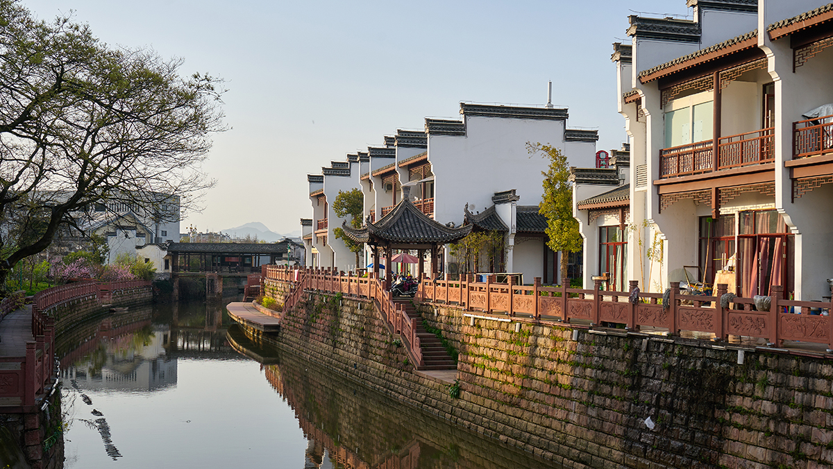建筑采用傳統徽派建筑形式,采用白墻、黑瓦、馬頭墻的傳統徽州建筑形式,徽派色調,古樸典雅。建筑因地制宜,利用街道,廣場和濱水空間,建筑布局分合有致,立面變化豐富,創造簡樸,親切和生動的室外城市公共開放空間。建筑體現徽派風情,呈現徽州傳統風貌。