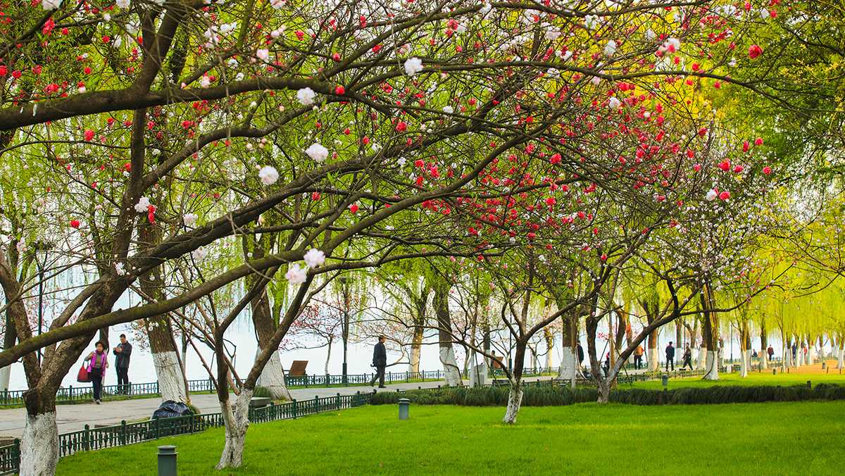 “柳浪聞鶯”是西湖十景之一,是西湖邊的觀景佳地。園內開挖水體,改造地形,梳理植物,形成了大片草坪、疏林草地、密林相間的公共綠地。水邊綠草如茵,遠處喬木如峰巒般起伏,林下繁花錦簇,景觀清新、雅致。柳浪聞鶯在繼承傳統造園手法的同時,力求創新,在園林空間布局、園林植物配置等方面,探索了新的內涵和表現形式,形成融于西湖自然山水并符合新時期公共游賞休閑的新園林。