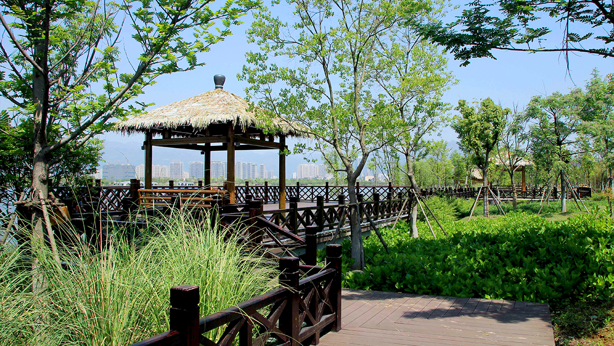 設計初期既在滿足滯洪區蓄滯洪功能前提下,提前考慮與周邊的勝利塘河、勝利河及鹽盆山等地塊相互聯動統籌規劃,差異化定位,共同打造樂清中心城區的“城市綠肺”。