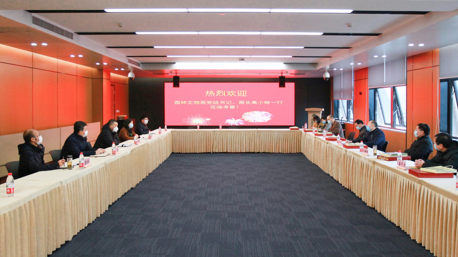 3月3日下午,園林文物局黨組書記、局長高小輝率隊蒞臨我院考察。杭州園林設計院股份有限公司董事長兼總裁呂明華、副總裁兼設計集團總經理李永紅、副總裁兼生態環境集團總經理葛榮、副總裁童存志、董事會秘書伍恒東、行政綜合部部長陳晨出席會議。