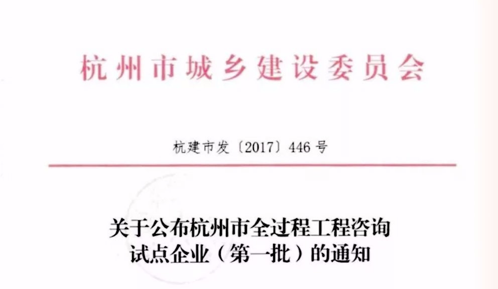 近日,杭州市住房與城鄉建設委員會下達了“關于公布杭州市全過程工程咨詢試點企業(第一批)的通知(杭建市發【2017】446號)”和“關于公布杭州市工程總承包試點企業名單(第一批)的通知(杭建市發【2017】447號)”,我院成功入列這兩個名錄。